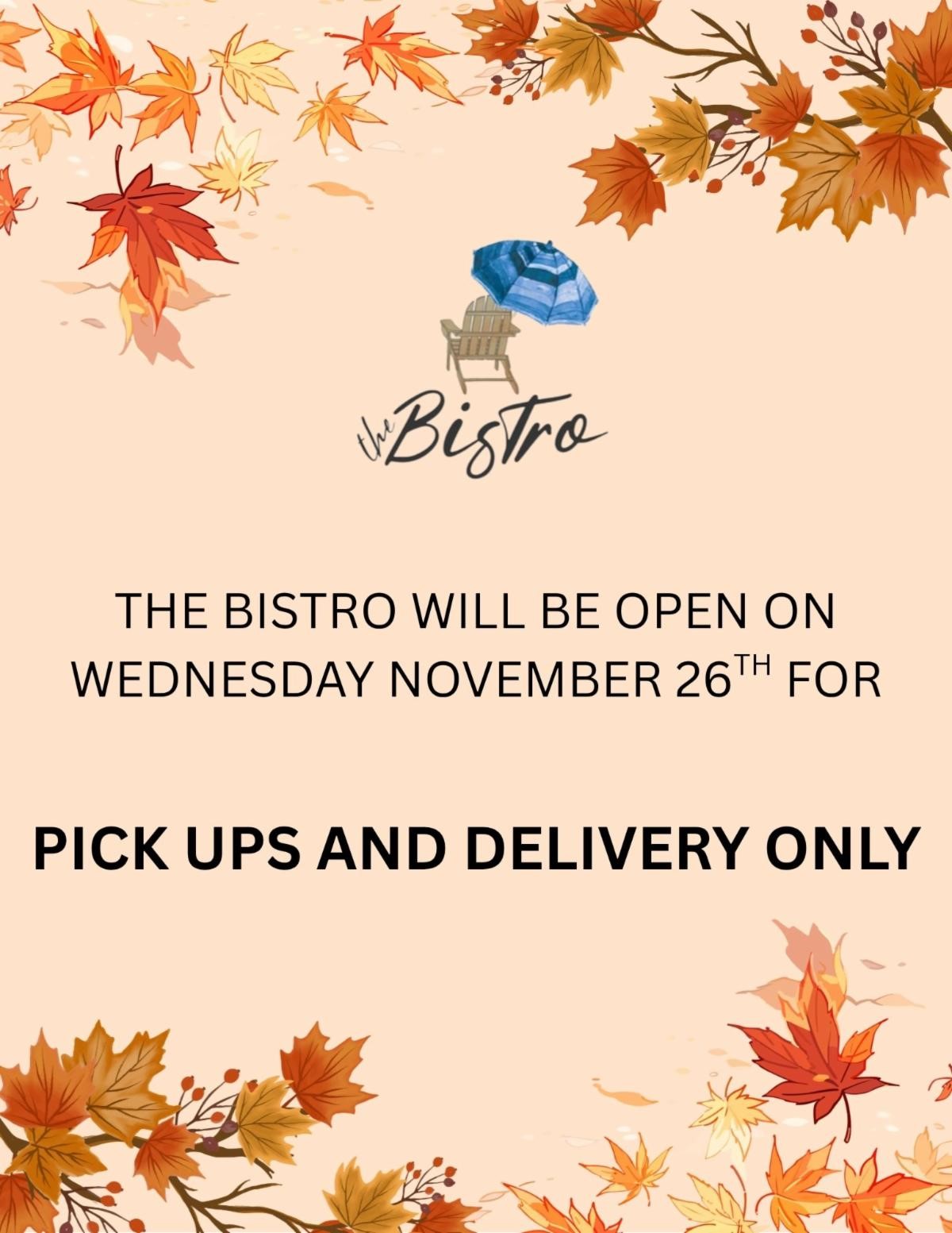 – – Bistro – Weekly Specials & Friday Night Dinner
